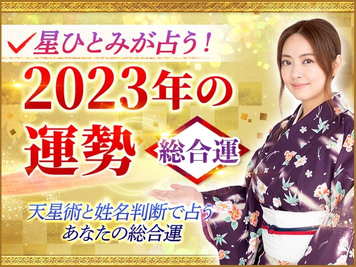 2023年は人生に大きく関わる決断をすることになる重要な年。大切なのは、「こうしたい」という強い思いを抱き、行動することです。そうすることで、新たな世界が開けてきます。方向性は、3月までに決めておきましょう。そうすれば、5月にはチャンスがやってきます。待っているよりも、行動することが大切です。注目すべきは8月です。トラブルが起きたときは、まずは流れに任せましょう。周りに向けてアンテナを張り、挫折や失敗を恐れずにチャレンジし続けましょう。そうすれば、2023年はハッピーな1年になるでしょう。