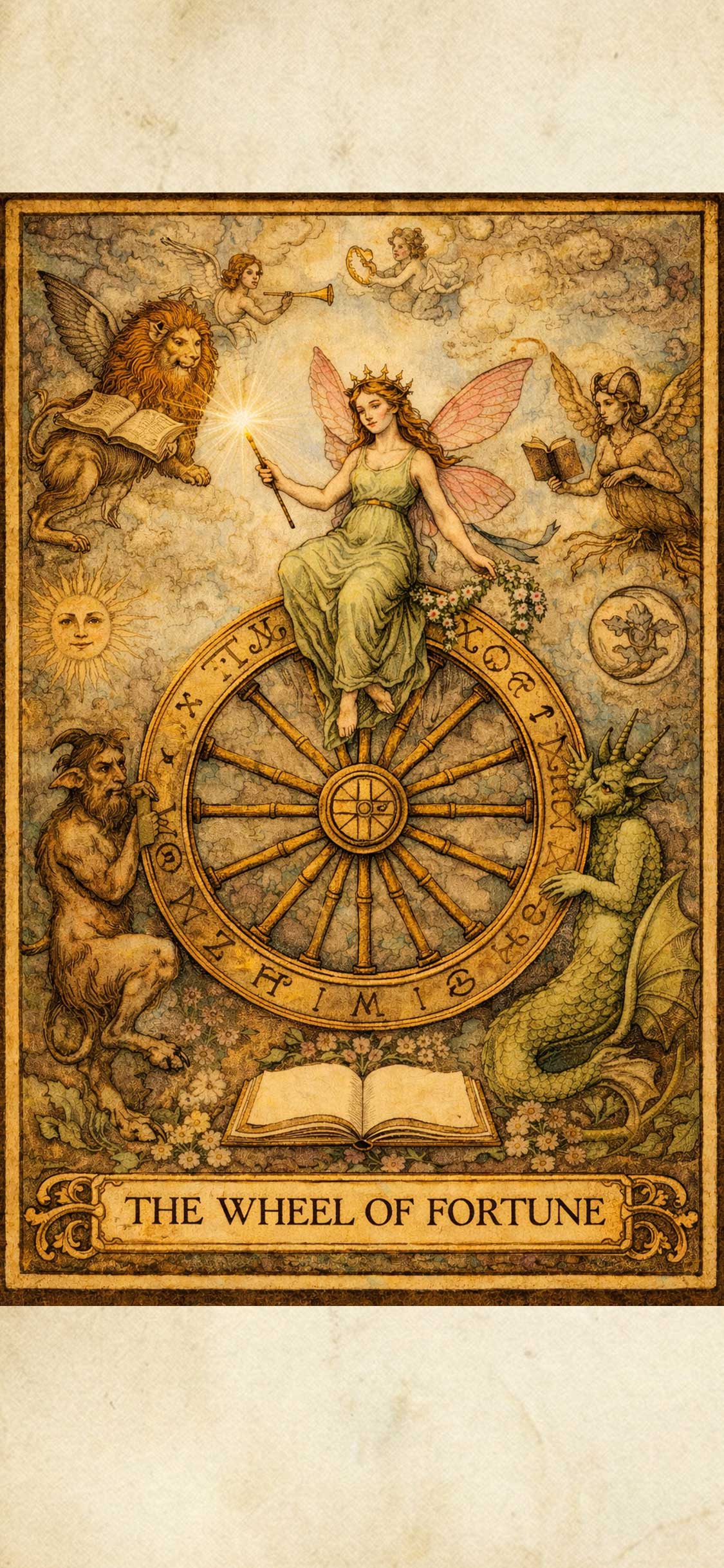 合計数の「10」が表すのは、タロットの**「運命の輪(Wheel of Fortune)」。 これは、自分の力だけではどうにもならない「大きな運命の好転」や「チャンスの到来」**を意味します。 2026年は、思いがけないラッキーや、人生のステージが変わるような出来事が起こりやすい年。このカードを待ち受けにすることで、巡ってきたチャンスを逃さず、運命の波に乗ることができます。