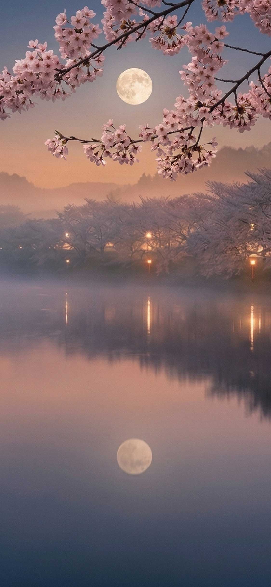 夜桜待ち受け効果を感じたいなら、このような満月と川面が入った桜の画像はとても使いやすいです。恋を落ち着かせたい時、浄化したい時、執着を少し手放したい時に向いています。